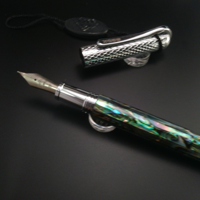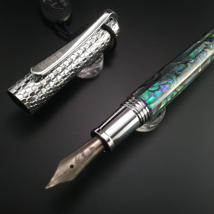 嚴選鮑魚貝, 渾厚質樸內斂, 獨家設計款式  銅製精鉻電鍍配件, 有彈性機構的筆夾. 獨家設計開模.  款式優雅, 好握,