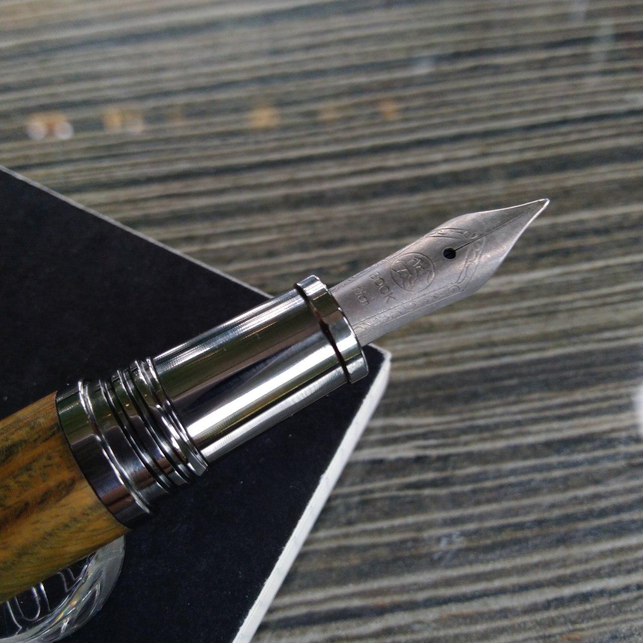 使用有口碑的德國山羊BOCK鈦尖經人工調整成刀尖的書法尖可寫出粗細分明的毛筆字