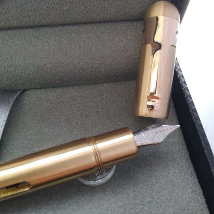 它有三種飾面:生黃銅、黑色和鍍鉻,並可選擇四種類型的筆尖:EF、F、M、B。