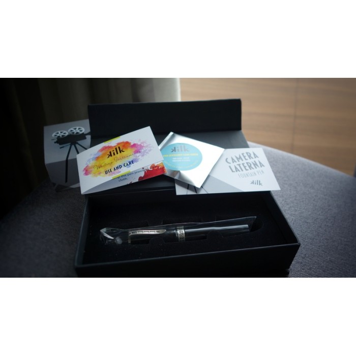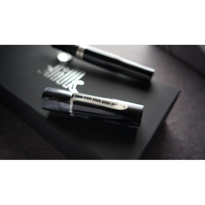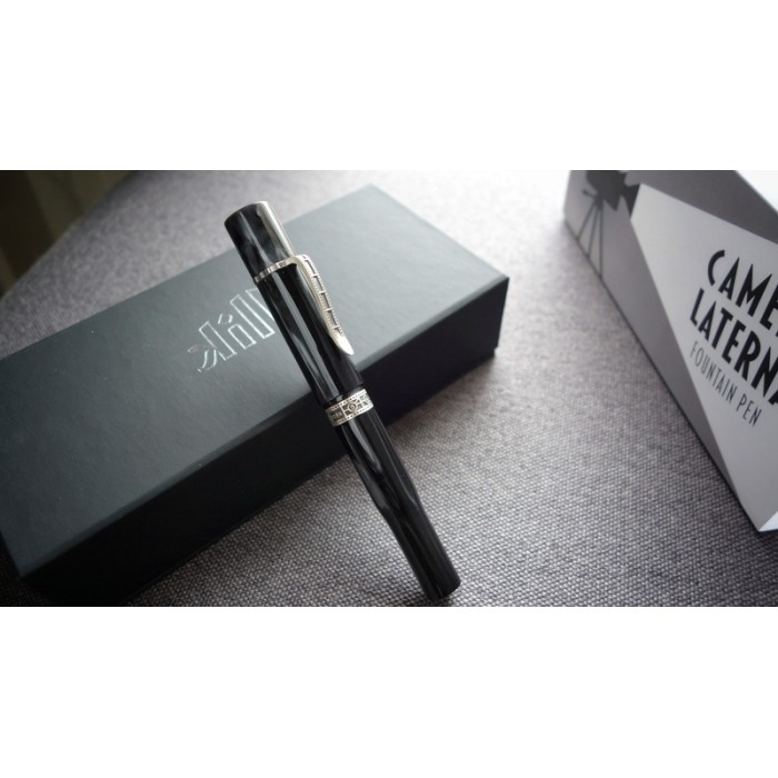 除了筆蓋的頂部膠片捲軸設計,以電影菲林型到爆925k純銀筆夾,筆身使用高級樹脂resin製作,如昔日在電影院看菲林電影播放中黑暗中有些柔和的輕煙如灰銀色在燈光照耀下。