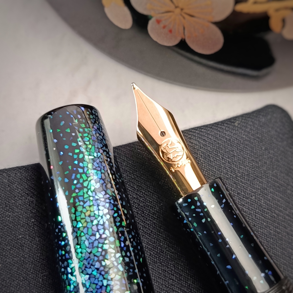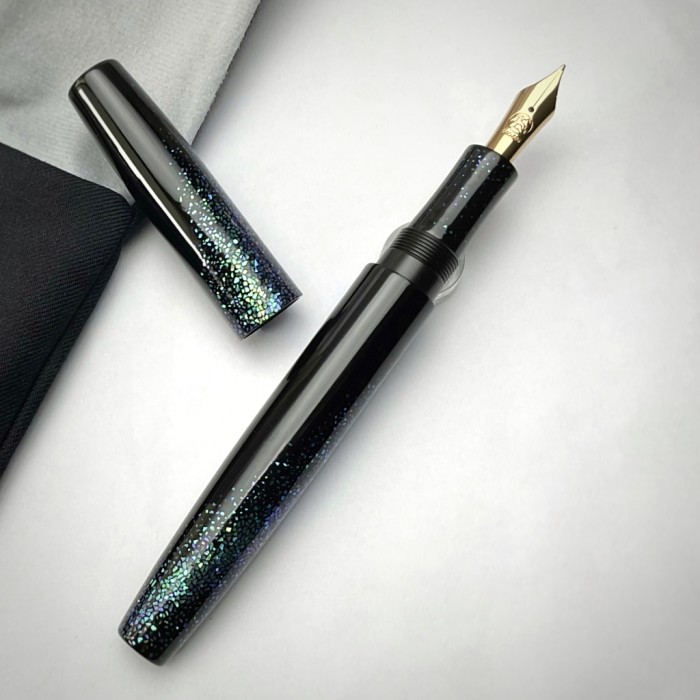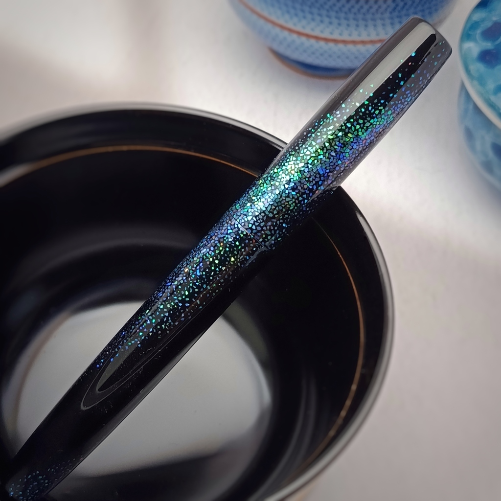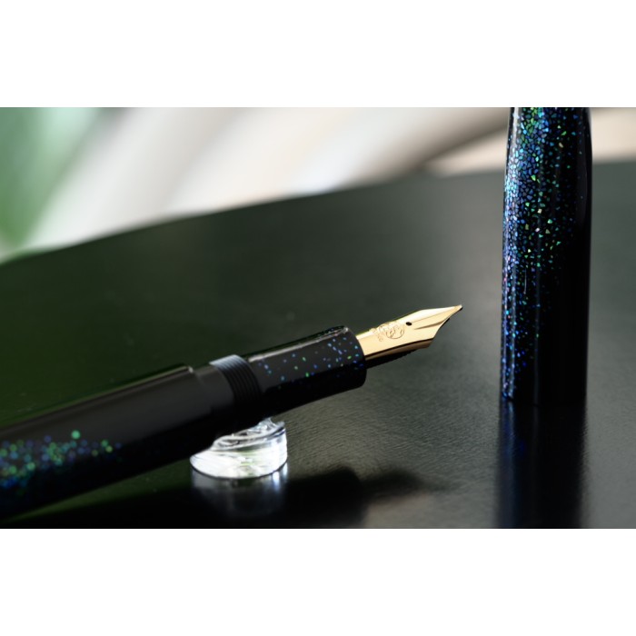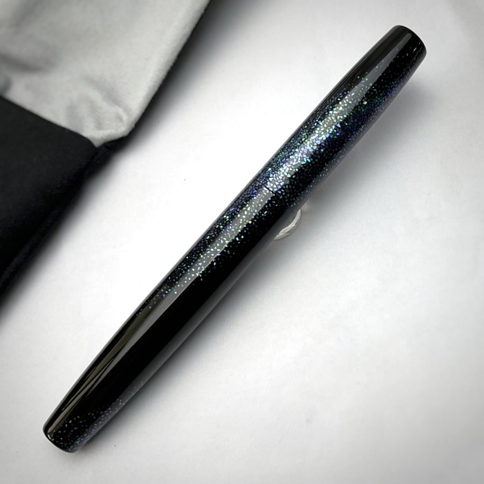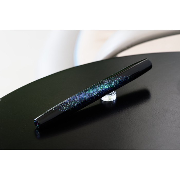 本系列特別引人注目的配色。此色由黑色與深藍交錯組成,遠看幾近純黑,光線下卻能見細緻紋理,宛如銀河中閃爍的星芒。這種低調而含蓄的光澤,在硬橡膠特有的光滑表面中綻放出迷人風采。實際使用者也提到,在自然光下觀看方能細賞其紋理層次,令每次書寫都像是一場靜謐的探索之旅。