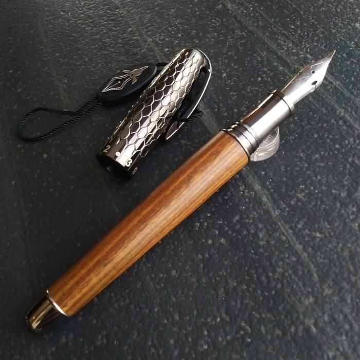 尺寸: 148mm 長, 筆蓋直徑15.9mm 筆桿直徑14.1mm 筆桿含筆尖130mm長, 筆重約43公克, 德國製吸墨器