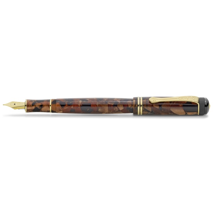Kaweco DIA2 琥珀限定版套裝以高級琥珀色丙烯酸樹脂打造,配以金色電鍍飾件,散發1920年代復古奢華氣息。此套裝全球限量1000套,每支筆均鐫刻獨一無二的編號,鋼筆與原子筆編號一致,彰顯珍藏價值。筆身採用手工拋光,搭配經典滾花設計,完美保留黃金時代的裝飾元素及比例。