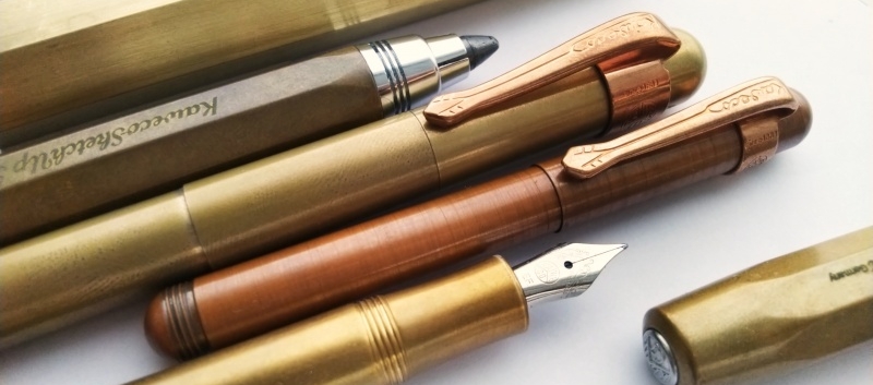 德國 KAWECO BRASS Sport 系列鋼筆、走珠筆、原子筆、鉛筆,1935年經典八角形設計,黃銅材料力求呈現原始金屬感覺,沒有添加多餘的元素,筆身完整表達出完美的冷冽感,並且帶有自然的拉絲鋼紋路。