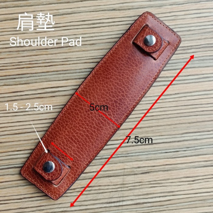 這款肩墊選用意大利植鞣牛皮製作表面,展現自然紋理與溫潤色澤,隨時間使用更添個人風格。背面則採用柔軟羊皮墊層,觸感細膩,貼合肩部輪廓,有效減輕長時間背負的壓力。